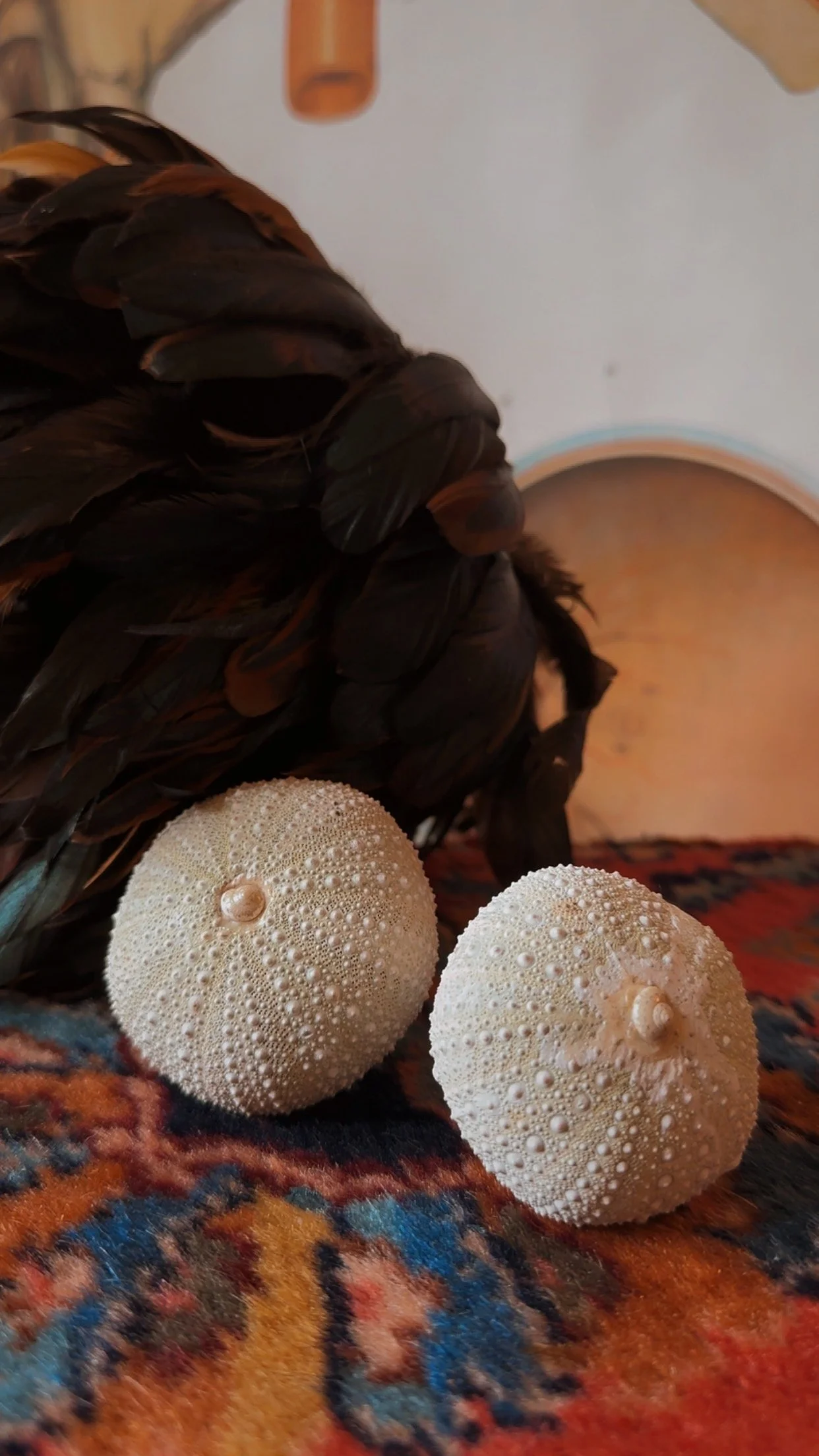 How fun are these?! So brilliantly made with concrete to reinforce the fragile nature of the urchin— topped with tiny sea snail shells. Perfect for a custom look to a curio cabinet, bathroom drawers or anywhere, really!