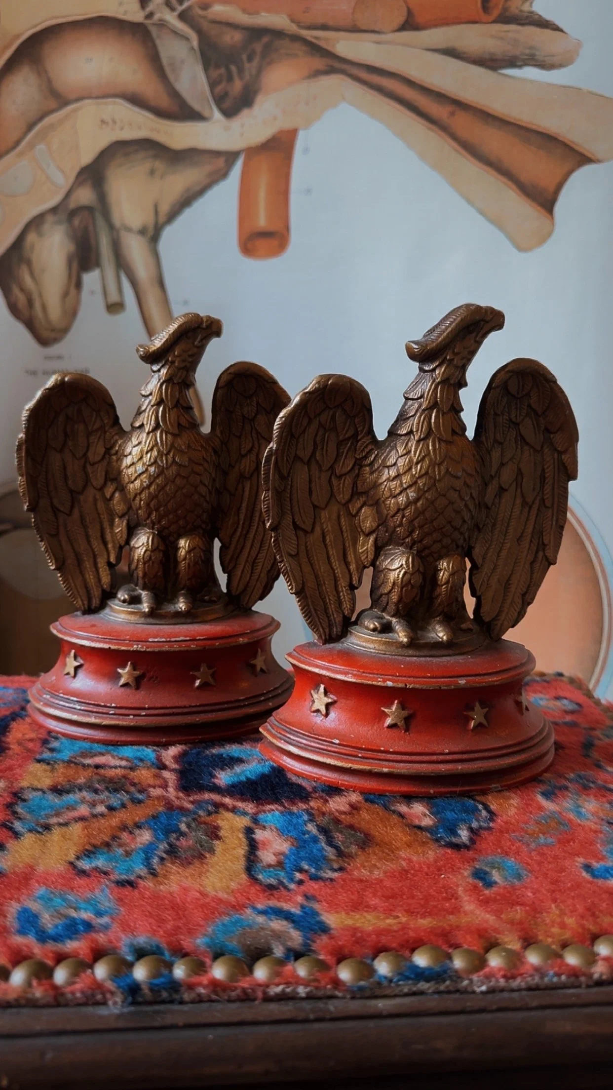 Shop Curio › Cast Iron Eagle Bookends Image 1 of 3 Image 2 of 3 Image 3 of 3 Cast Iron Eagle Bookends $115.00 This pair are a striking set and both sides have detail so you can display them from any angle! Add to Basket Added! This pair are a striking set and both sides have detail so you can display them from any angle! Reviews Reviewer Name Review Date Star Rating Description Posted on Etsy Product Show More